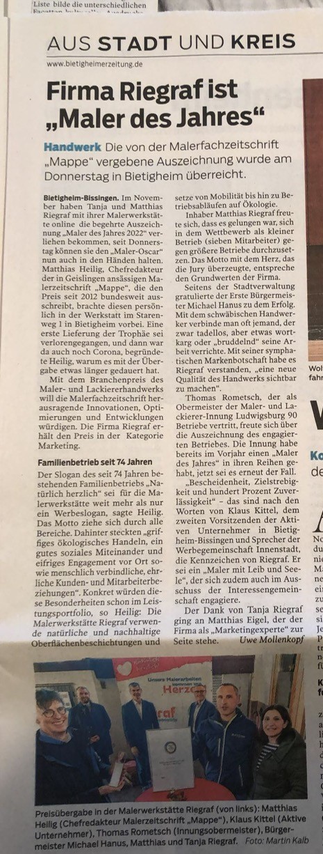 Kann es ein Familienbetrieb wagen, sich mit so vielen anderen, guten und meist deutlich größeren Malerbetrieben in einem Wettbewerb messen? Wir haben’s getan – und beim renommierten Branchenpreis „Maler des Jahres“ der Fachzeitschrift MAPPE gewonnen!